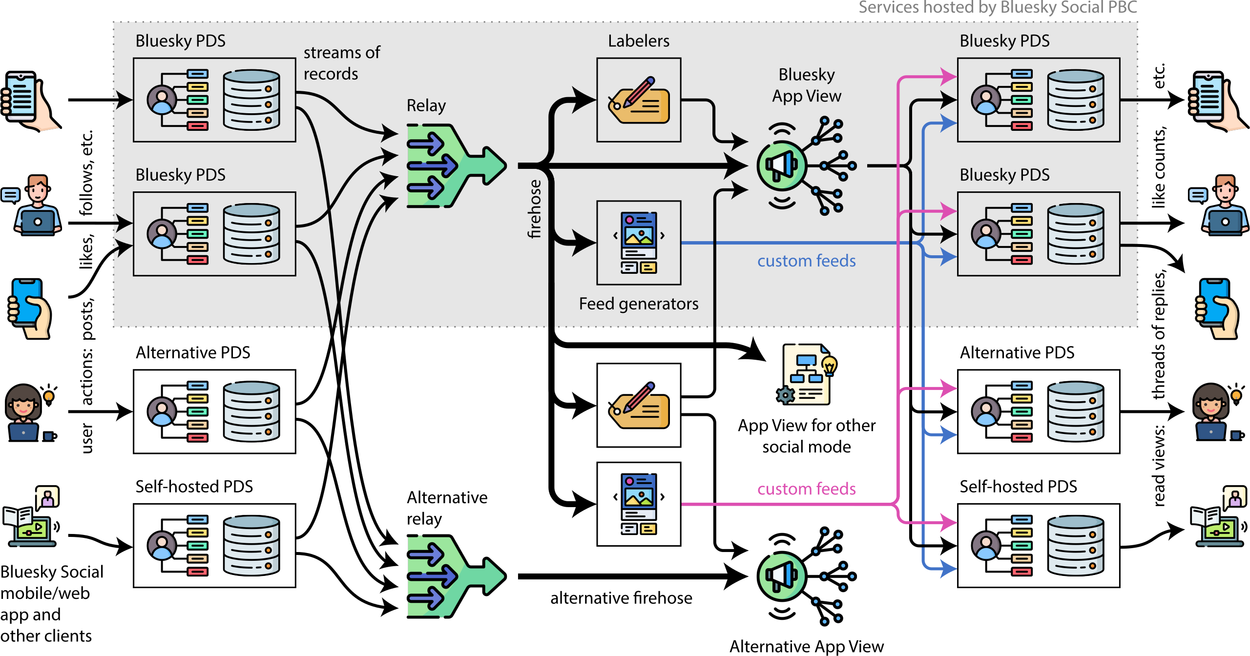 Bluesky developed the AT Protocol (ATProto for short), an open source set of rules and standards designed for enabling decentralized web applications. Whilst its first application is the Bluesky microblogging platform, ATProto is, at its core, a general-purpose framework for identity, data hosting, and federation. It allows many independent apps and services to talk to each other, while letting users retain control over their content and identity. Think of it as a modern, more flexible version of what the web should have become: a way for people and apps to interact freely without being locked into a single platform.